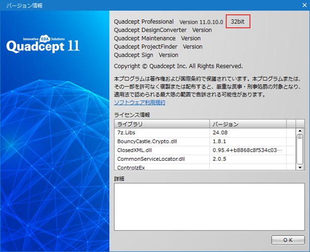 Quadceptは、次期バージョン(V11.1.0)以降、「32bit版」インストーラーの提供およびアップデートを終了させていただきます。